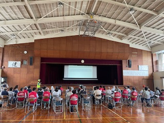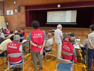 避難所開設運営訓練について 2024年10月23日 今年度の「防災訓練」は「相野山学区」で行う避難所開設運営訓練です。 「避難所」を立ち上げ運営するのに必要な6つの係があります。 「五色園区」の役員・自主防災隊と「北新区」の役員の皆さんで 6つの係に分かれて事前の説明会に参加し、説明後係ごとで当日を想定し打ち合わせを行いました。 2024年10月23日 [g] ▲